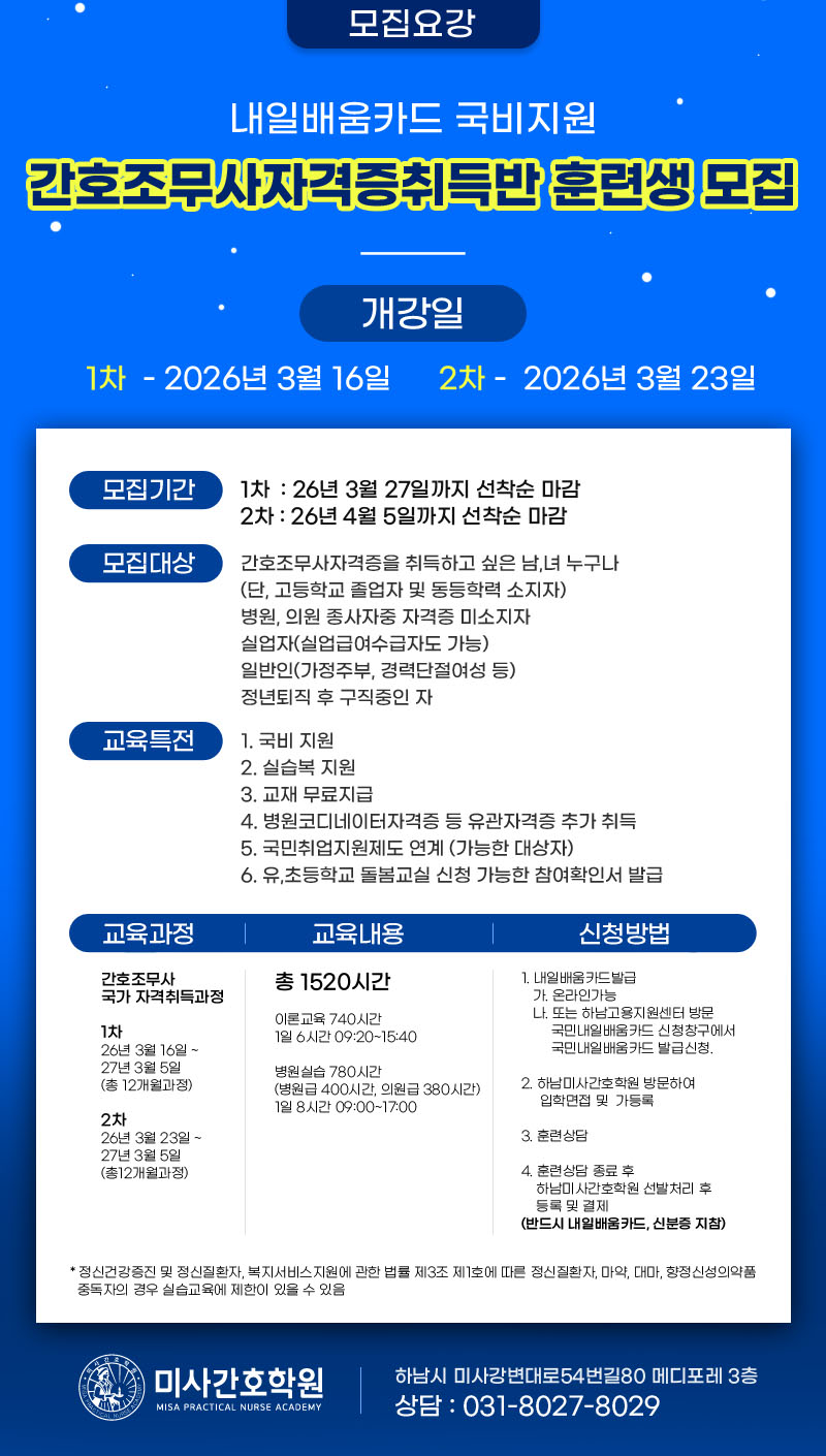 °í¿ë³ëµ¿ºÎ ±¹ºñÁö¿ø °£È£Á¶¹«»ç ±¹°¡ÀÚ°ÝÃëµæ°úÁ¤ ÈÆ·Ã»ý¸ðÁý(2026³â »ó¹Ý±â)